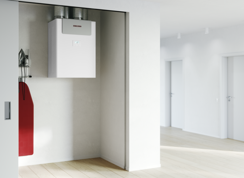 Az épületek hőveszteségének jelentős része a szellőztetés során keletkezik. Ezen hőveszteség csökkentésére szolgálnak a STIEBEL ELTRON szellőztető berendezései. A megoldás lényege, hogy egy ventilátor segítségével folyamatosan friss, oxigéndús külső levegő jut a helyiségbe, míg ezzel egyidőben egy másik ventilátor elszívja az elhasznált levegőt. A két légmennyiség a készülékben elhelyezett jó hatásfokú hőcserélőn keresztül átadja egymásnak a hőt, így a helyiségbe érkező levegő felmelegszik a fűtési üzemben, melynek köszönhetően a -15°C-os hideg levegő akár a +16°C-ot is elérheti. Egyértelmű, hogy a +16°C-os levegőt a +21°C-os szobahőmérsékletre felmelegíteni sokkal kisebb energiát igényel, mintha természetes szellőztetéssel a nyitott ablakon beáramló -15°C-os léghőmérsékletet kellene újra felfűtenünk. Egy jó minőségű hőcserélő esetén a filtrációs veszteség 20%-ra csökkenhet, azaz a filtrációs hőigény 80%-át megspórolhatjuk, ami a teljes fűtési költségekre vonatkoztatva egy ma épülő ház esetében 40%-os fűtési költség csökkenést jelent!